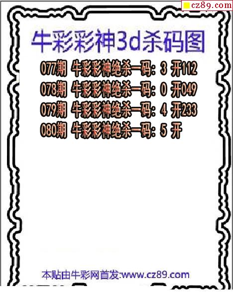 > 牛彩彩神杀码2026080期3d图谜(原创)